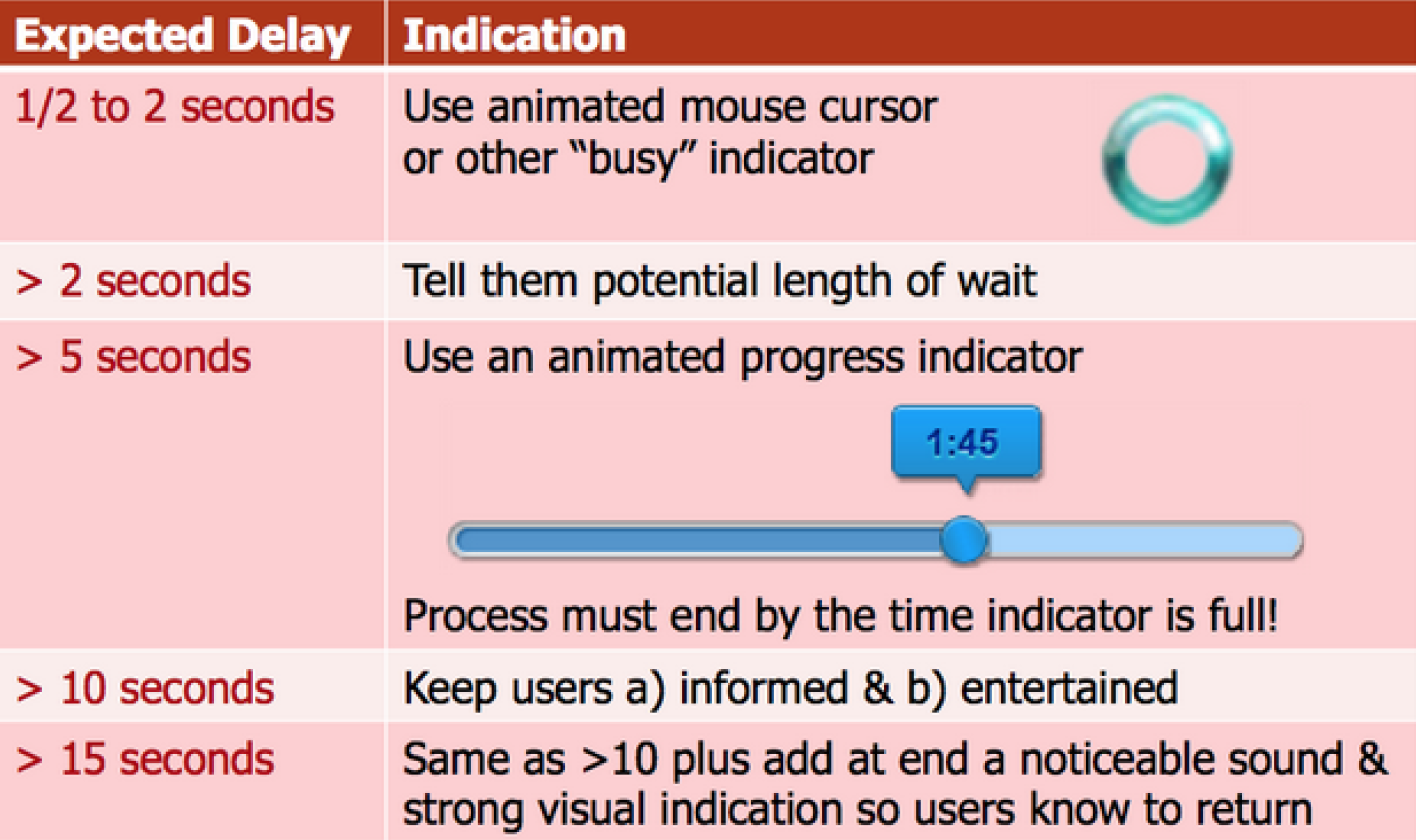 延迟经常通过多线程技术对用户隐藏,把用户传输数据或者系统计算的过程放到背景中,以便让用户继续他们的工作。现代的网页浏览器都能预先抓取所需的数据,当用户完成当前任务准备到下一个页面的时候不需等待很长时间。